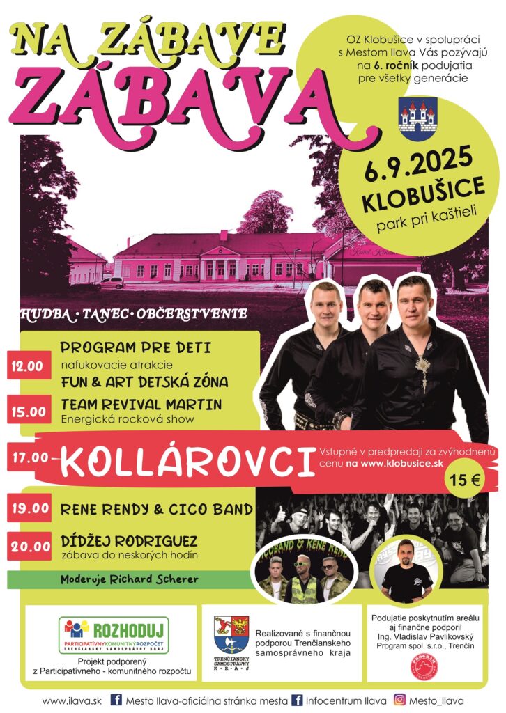 OZ Klobušice v spolupráci s Mestom Ilava Vás pozývajú na 6. ročník podujatia pre všetky generácie, ktoré sa bude konať dňa 6.9.2025 v Klobušiciach – park pri kaštieli